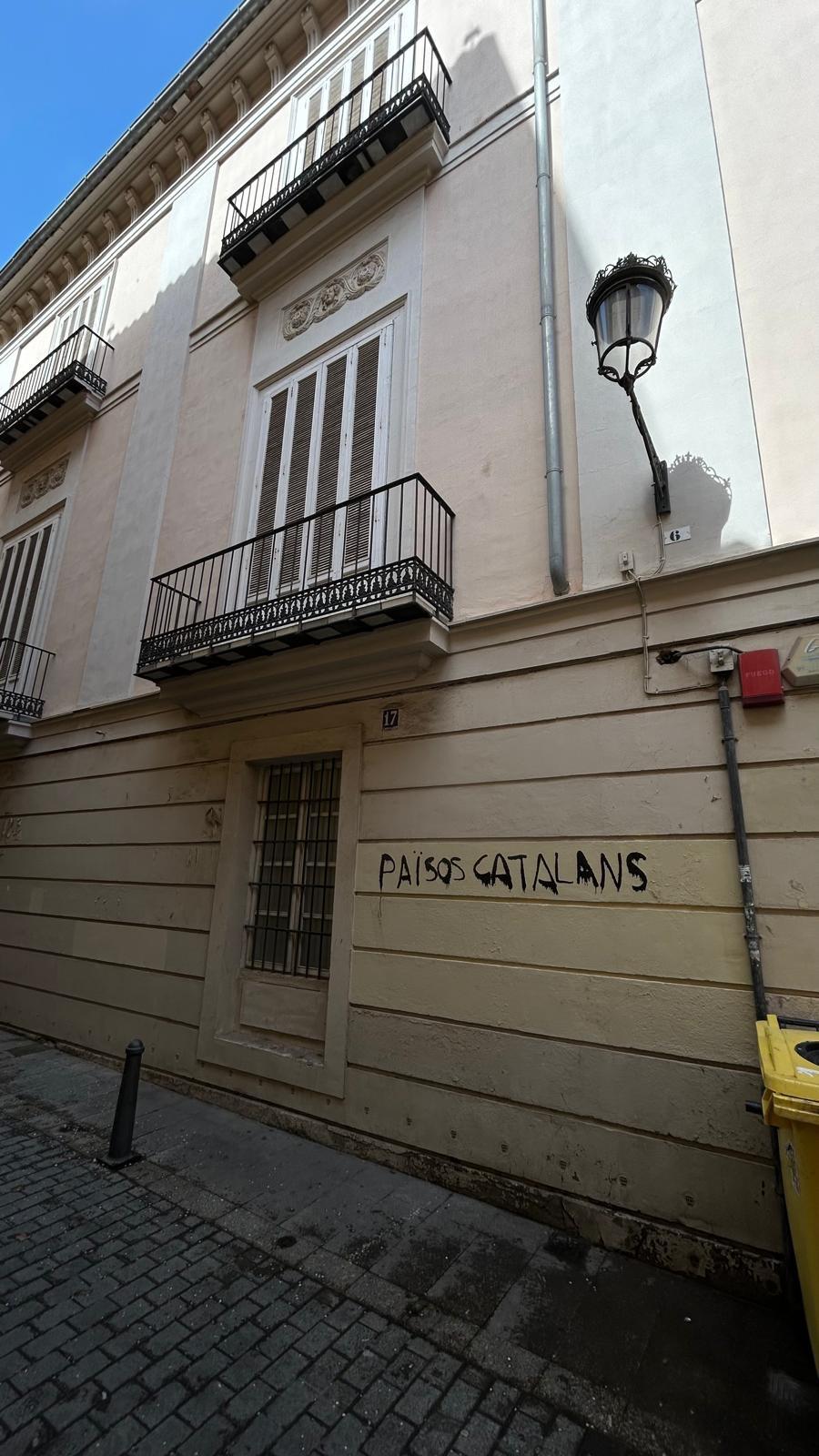 Des de Lo Rat Penat, volem denunciar enèrgicament l’atac vandàlic perpetrat contra la nostra sèu, un edifici emblemàtic del patrimoni valencià. En la matinada del 18 de març, la casa del valencianisme, situada en l’històrica residència dels Trenor en el carrer Trinquet de Cavallers, 9, ha segut objecte de pintades intimidatóries i ofensives, entre les que es poden llegir insults com ‘fills de puta‘ i consignes pancatalanistes compaïsos catalans‘.