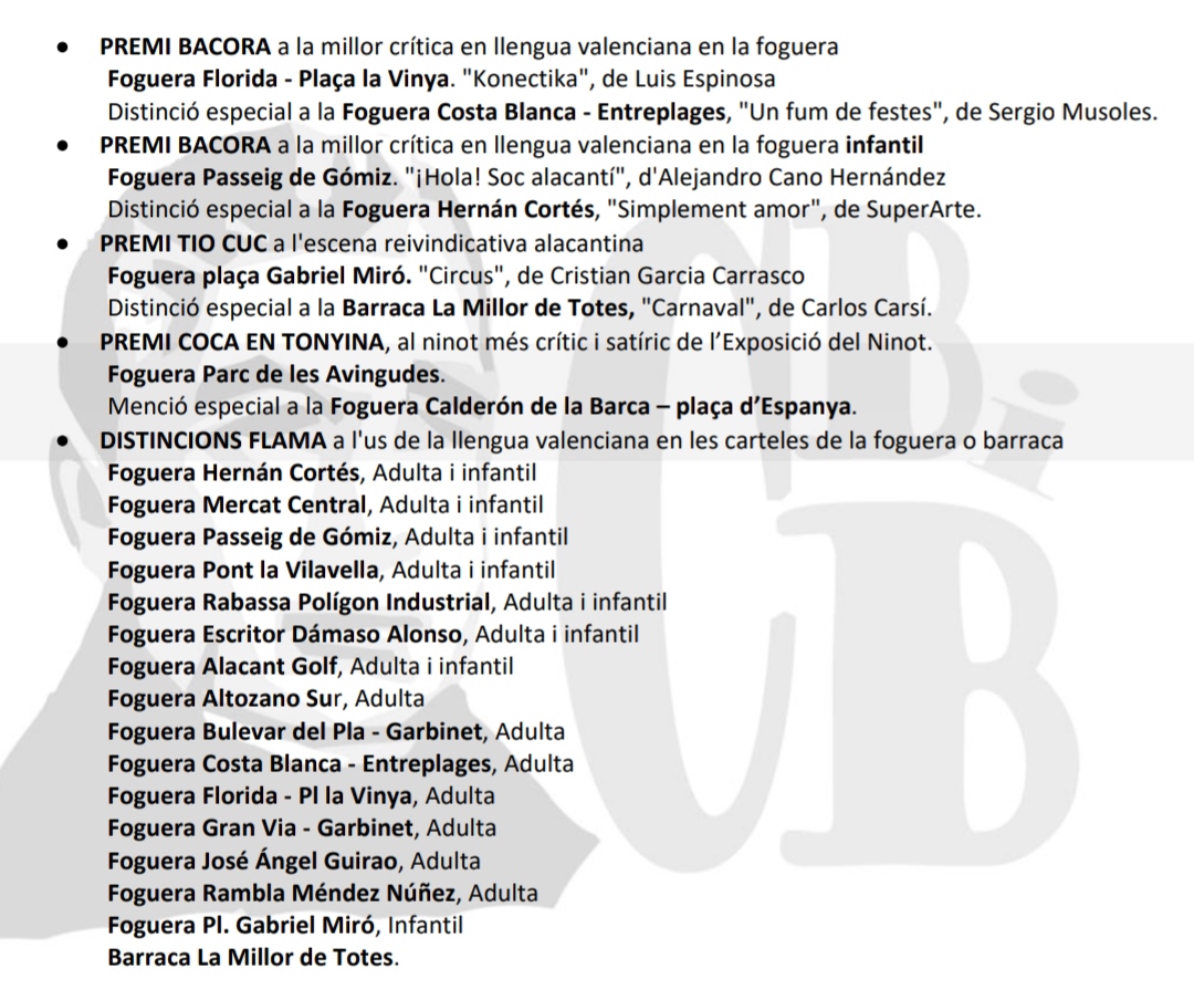 Estos premis pretenen posar en valor la crítica, l’ingeni i lagràcia de les fogueres i barraques, junt al creixent us delsvalencià en la festa.